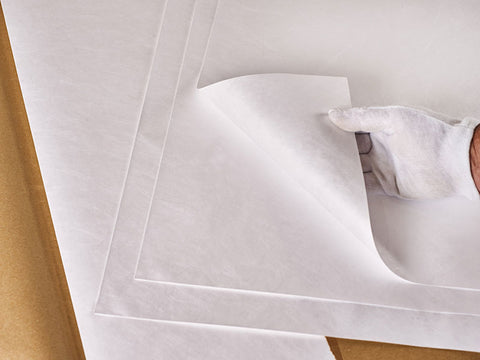Neutral pH glassine available in sheets and rolls, in a variety of widths and weights. Suitable for a variety of wrapping and interleaving applications. Smooth, translucent and off-white in colour, glassine is particularly useful in situations where transparency is required.