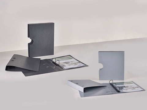 Our attractive Australian-made binder & slipcases provide complete protection and easy access for document and photographic collections. Made of inert polypropylene, the binder & slipcase combination creates a dust and light proof storage system that safely houses documents and prints up to A2. The 3 ring binder accommodates our hole-punched polyester and polypropylene sleeves. Used in conjunction with hole-punched sleeves, archival card-supports and photo-corners, these binders safely and attractively protect a wide range of photographic material, ephemera and documents to produce a true archival scrapbook! Passes the PAT. Ring assembly has a solvent-free synthetic polymer powder coating that does not off-gas.