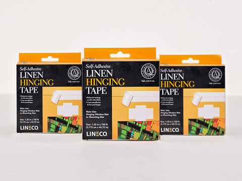 Extra strong, very thin linen cloth coated with a neutral pH non-yellowing, pressure sensitive acrylic adhesive. The high thread count makes it an excellent choice for hinging window mats to backer mats, or for making repairs in books, etc.