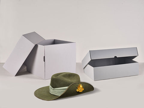 An economical range of high quality textile storage boxes constructed from buffered archival corrugated board that meets NAA standards. Offering a broad range of styles and sizes to accommodate most records and objects, these boxes do not require glue for assembly and are shipped flat to reduce freight & storage