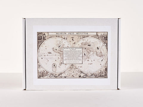 Collection of insect traps designed to capture pests most common in museum environments. Each kit contains 10 stealth traps, 10 Trapper Monitor traps, 2 lures for varied Carpet Beetle, 2 lures for Black Carpet Beetle, 2 lures for Cigarette Beetle and 2 lures for Warehouse Beetle. Kit also contains 10 food baits for Cockroaches and Silverfish. Details instructions included. Contains no pesticides.