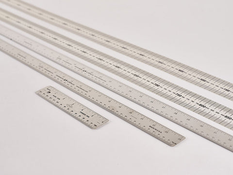Handy tools for scoring, cutting or drawing. Cork backing on the Stainless Steel rulers helps to prevent slipping & feature both inches and millimeters. Transparent Mylar ruler allows viewing of material underneath (mm only).