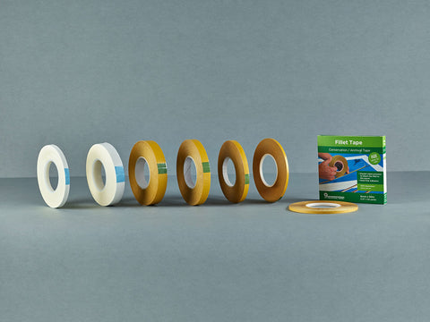 Fillet tape is polyester, coated with an acrylic adhesive system on both sides.